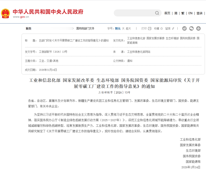 将遴选一批零碳工厂作为标杆